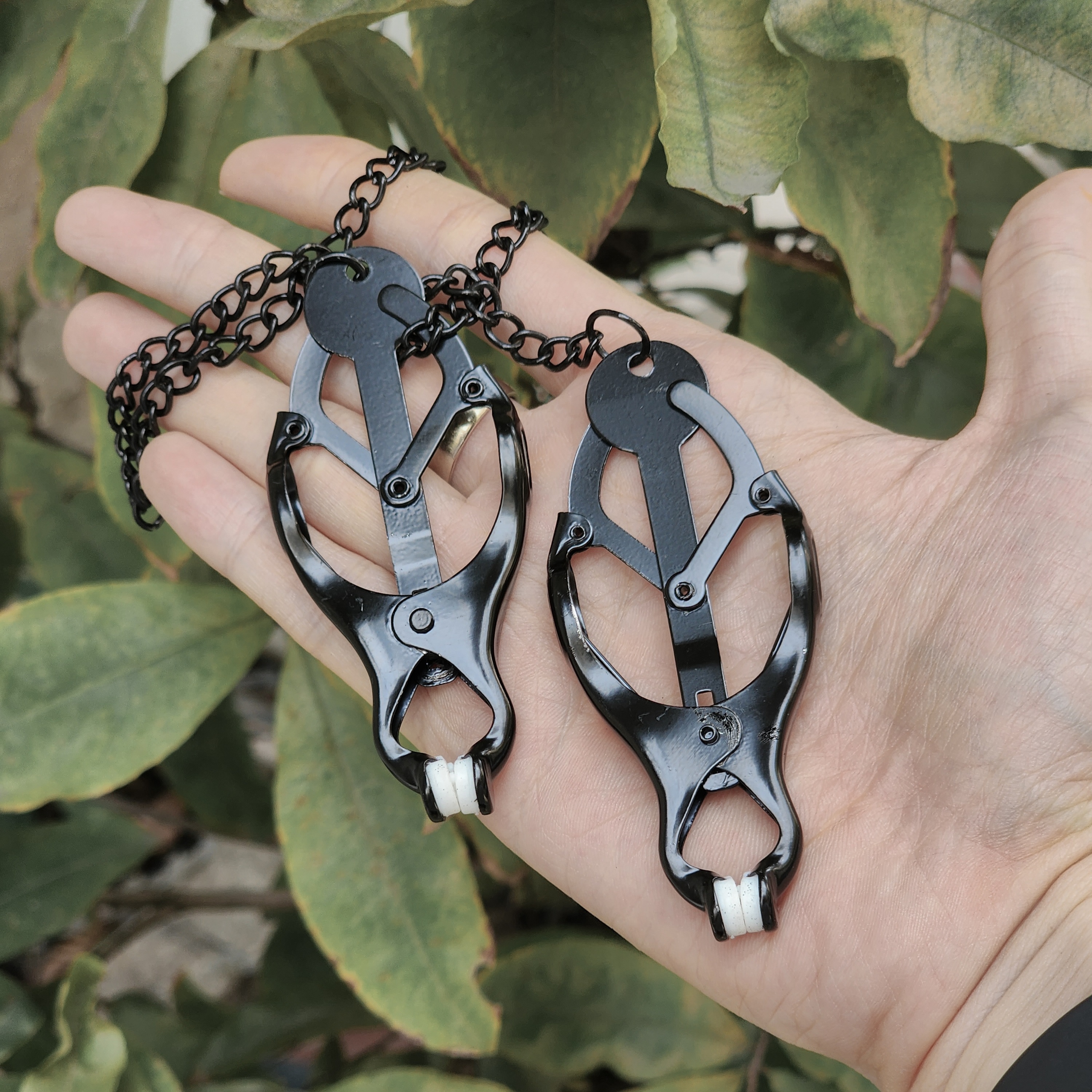 Được thiết kế theo phong cách BDSM chuyên nghiệp, bộ kẹp này không chỉ là một dụng cụ kích thích, mà còn là biểu tượng của sự chiếm hữu. Cảm giác lạnh toát của kim loại chạm vào da thịt, theo sau là lực kẹp siết chặt sẽ đánh thức những dây thần kinh ngủ quên nơi vòng 1 của bạn.